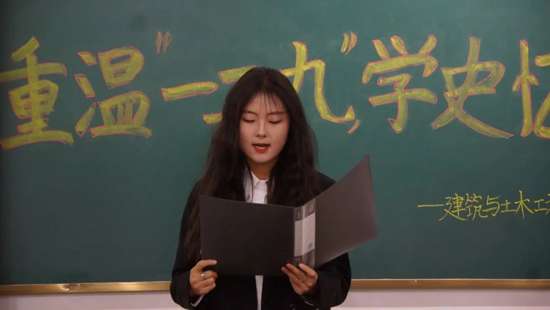 会议伊始,主持人付鸿喻介绍会议目的与意义,随后宣讲员蔡蕊带领大家学习“一二·九”运动。她介绍其背景、经过与意义,回顾那段苦难历史,让同学们深切感受先辈的坚定信念与无畏勇气,爱国情和使命感在党员心间扎根。从“一二·九”运动到电影《志愿军:雄兵出击》,热血青年的爱国赤诚一脉相承,他们奔赴战场、浴血奋战,用生命捍卫国家尊严,共同铸就中华民族的精神脊梁。