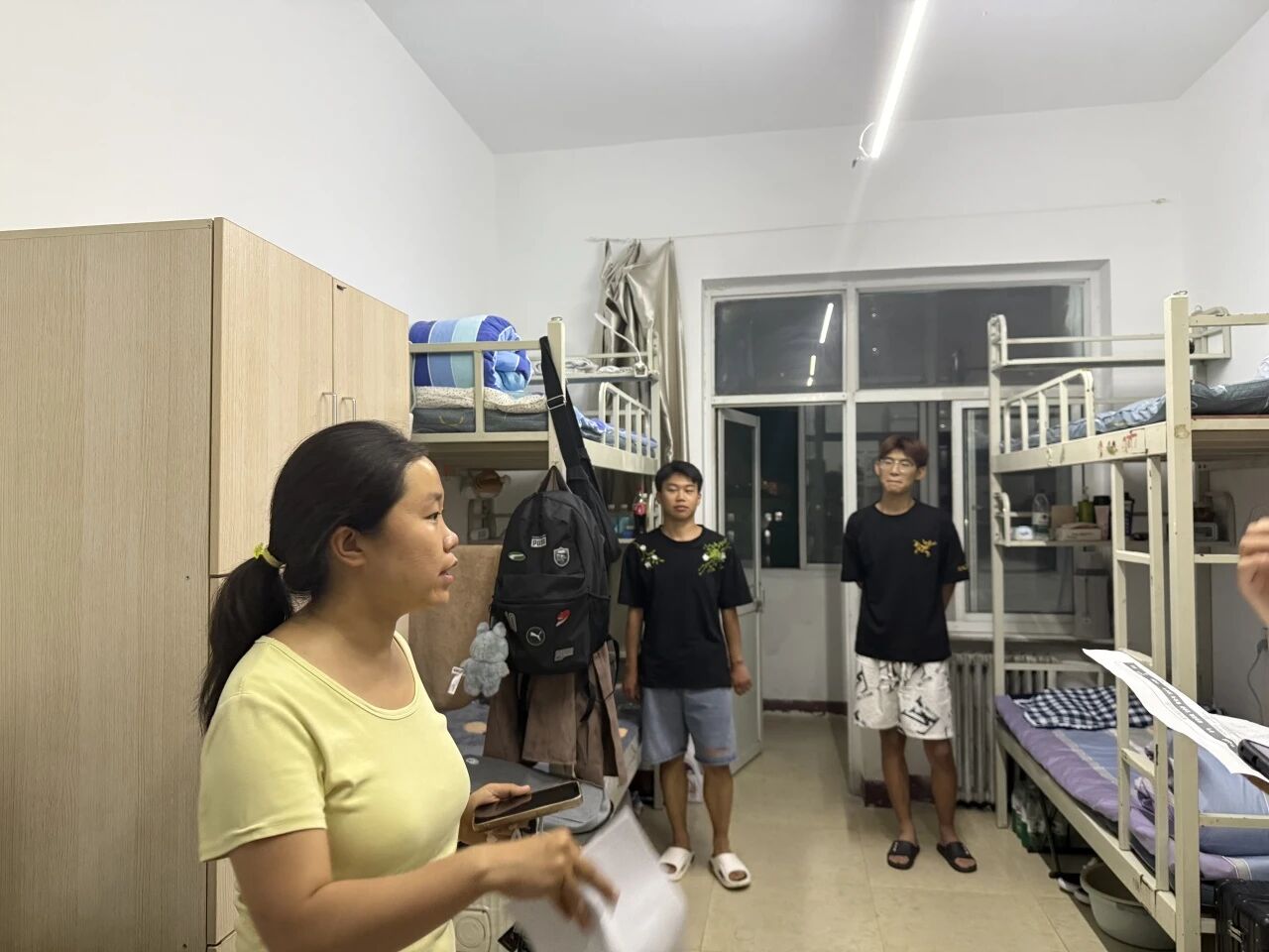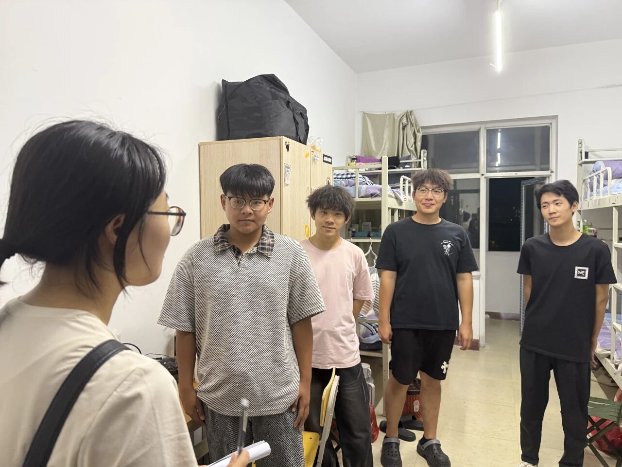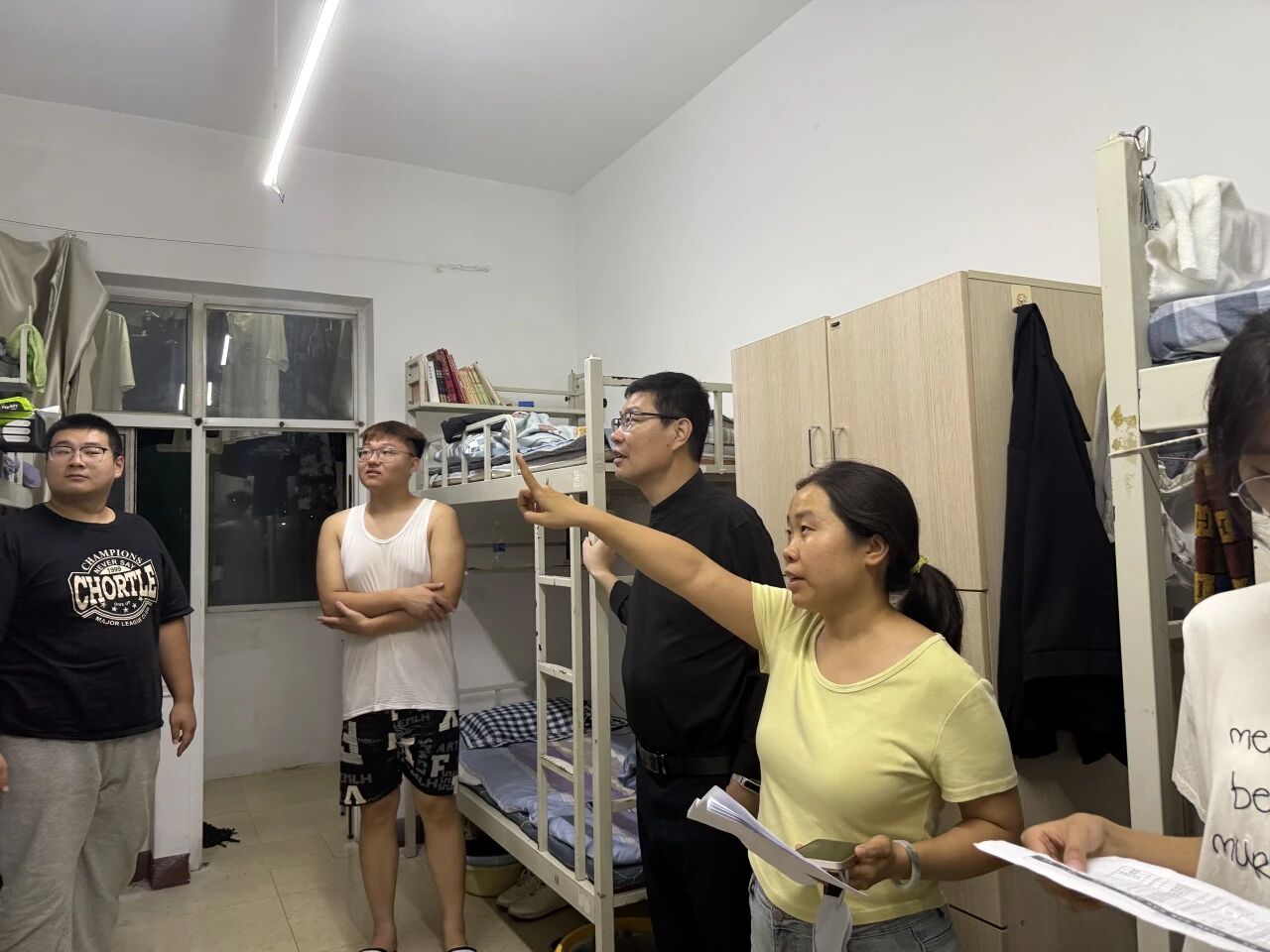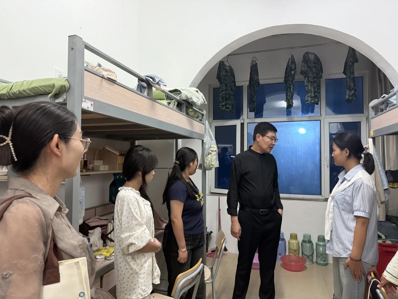 走访过程中,老师们与新生们亲切交谈,详细询问他们的住宿环境、饮食情况及入学后的适应状态,耐心倾听新生在生活和学习上遇到的困惑与问题。针对新生提出的社团选择、校园设施使用等疑问,老师们逐一进行细致解答,并结合自身经验给出实用建议。同时,老师们还细心叮嘱新生要注意用电安全、做好宿舍卫生,鼓励大家在新的集体中互帮互助,尽快建立良好的人际关系,积极调整心态,以饱满的热情投入到大学学习与生活中。