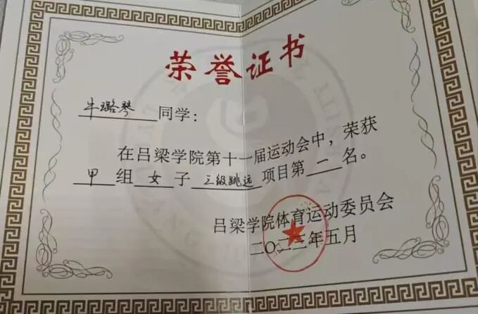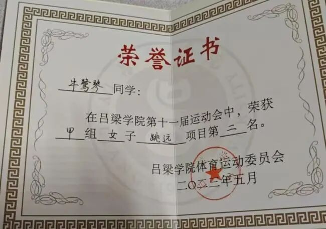 2023年05月获必威西汉姆联第十一届甲组女子三级跳远第一名