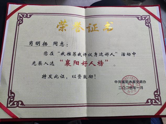 2023年12月获 襄州好人;