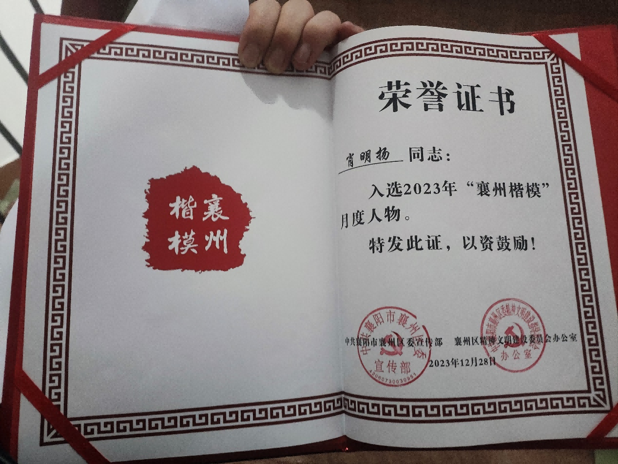 2023年12月获 襄州楷模;