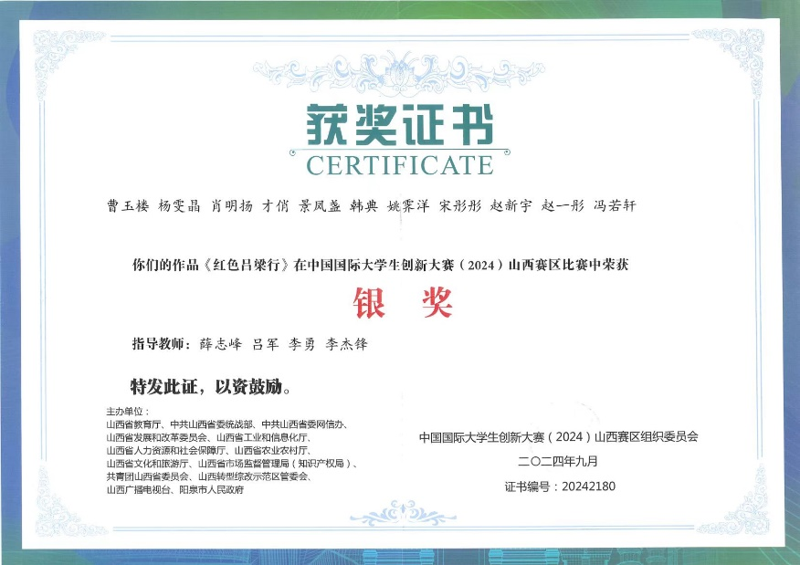 2024年10月获 第十届山西省互联网+省级银奖。