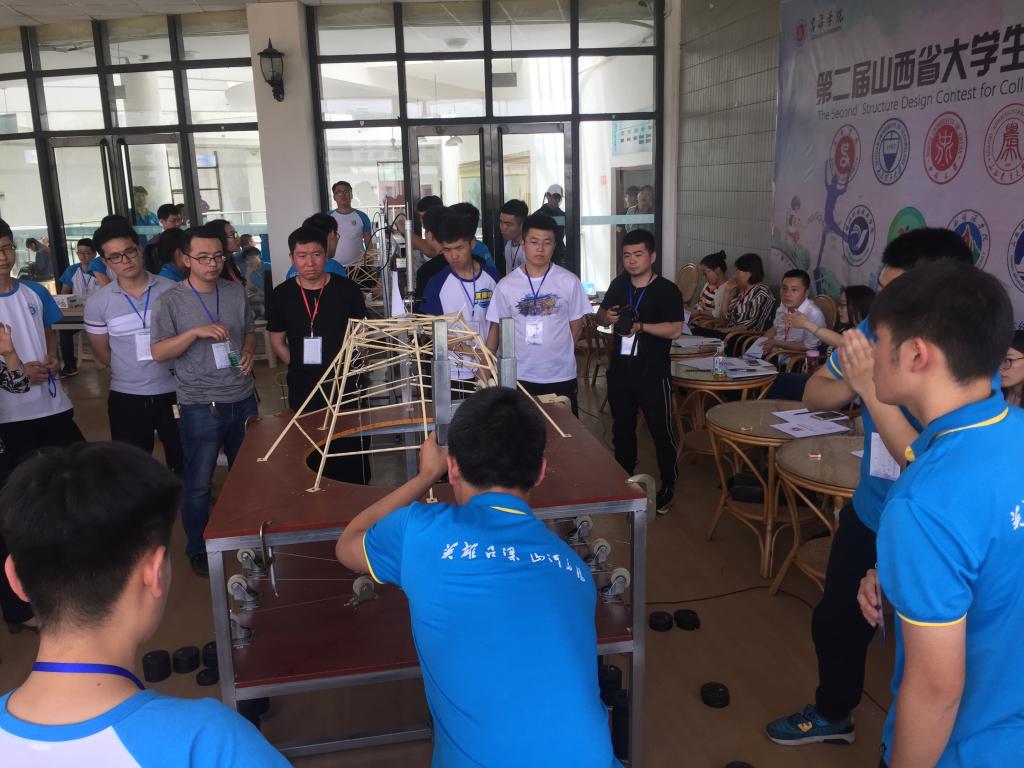 5月13日,为期三天的第十二届全国大学生结构设计竞赛山西省份区赛暨第二届山西省大学生结构设计竞赛在我校音乐厅顺利落下帷幕。山西省土木建筑学会秘书长王学章,山西省大学生结构设计竞赛委员会常务副主任雷宏刚,山西省大学生结构设计竞赛委员会副主任张泽平,山西省大学生结构设计竞赛委员会、秘书长董晓强、必威西汉姆联副院长冀建峰、建筑系主任、大赛组委会主任高树峰、建筑系副主任、大赛组委会评审委员会副主任崔彩萍以及赵海燕等10名来自兄弟院校的专业教师应邀出席本次比赛并担任评委。大赛由山西省土木建筑学会主办,山西省大学生结构设计竞赛委员会和必威西汉姆联承办,北京迈达斯技术有限公司、武汉大学出版社为本次大赛提供专业技术支持。