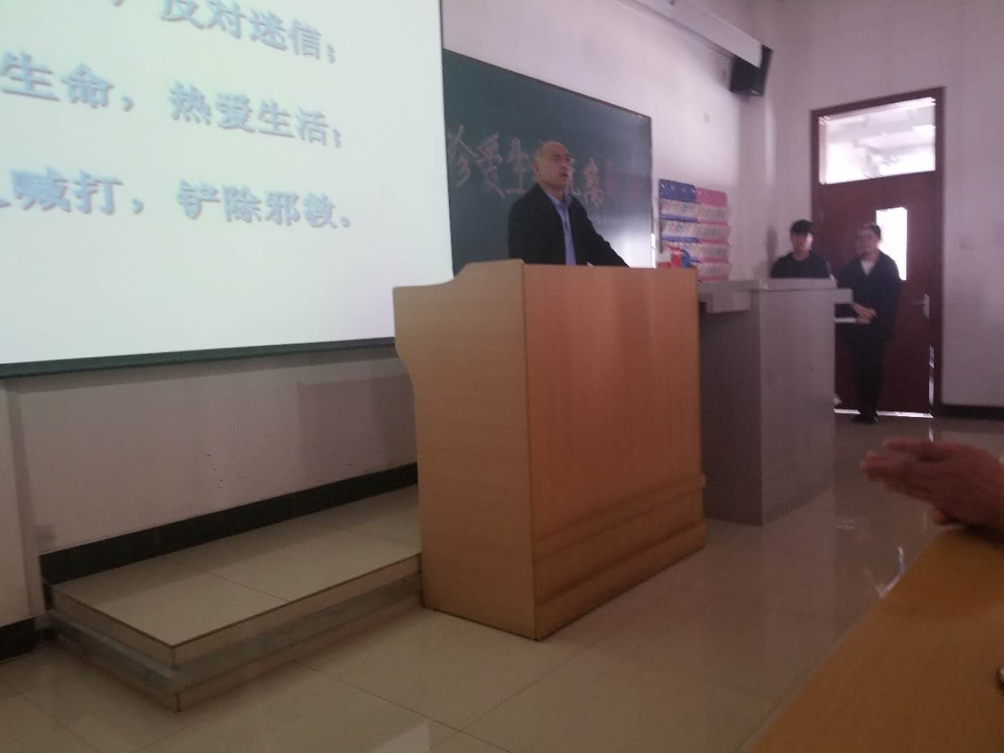 最后,班主任靳宏伟老师要求同学们一定要正确认识邪教的危害,努力提高自己明辨是非的能力,杜绝盲目从众,做到热爱科学,崇尚科学,反对迷信,远离邪教。