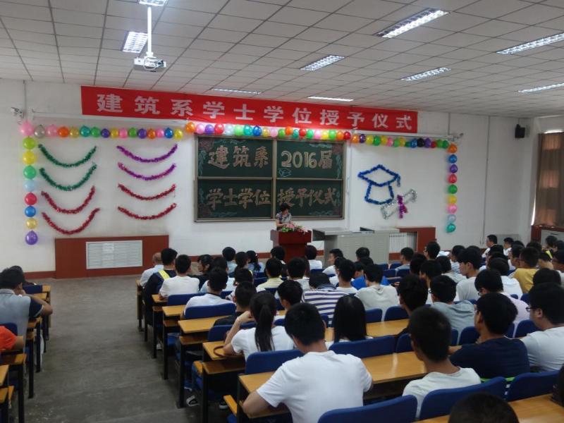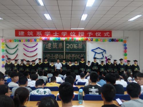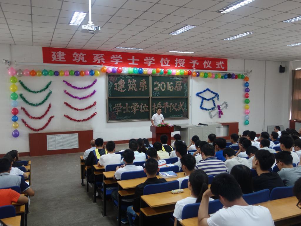 6月16日上午,必威西汉姆联建筑系2016届毕业生学士学位授予大会在阶教2C-201隆重举行。本次会议由我系学位评定分委员会副主席崔彩萍主持。系学位评定分委员会委员、毕业生班主任及2016届土木工程全体毕业生共同出席了本次仪式。
