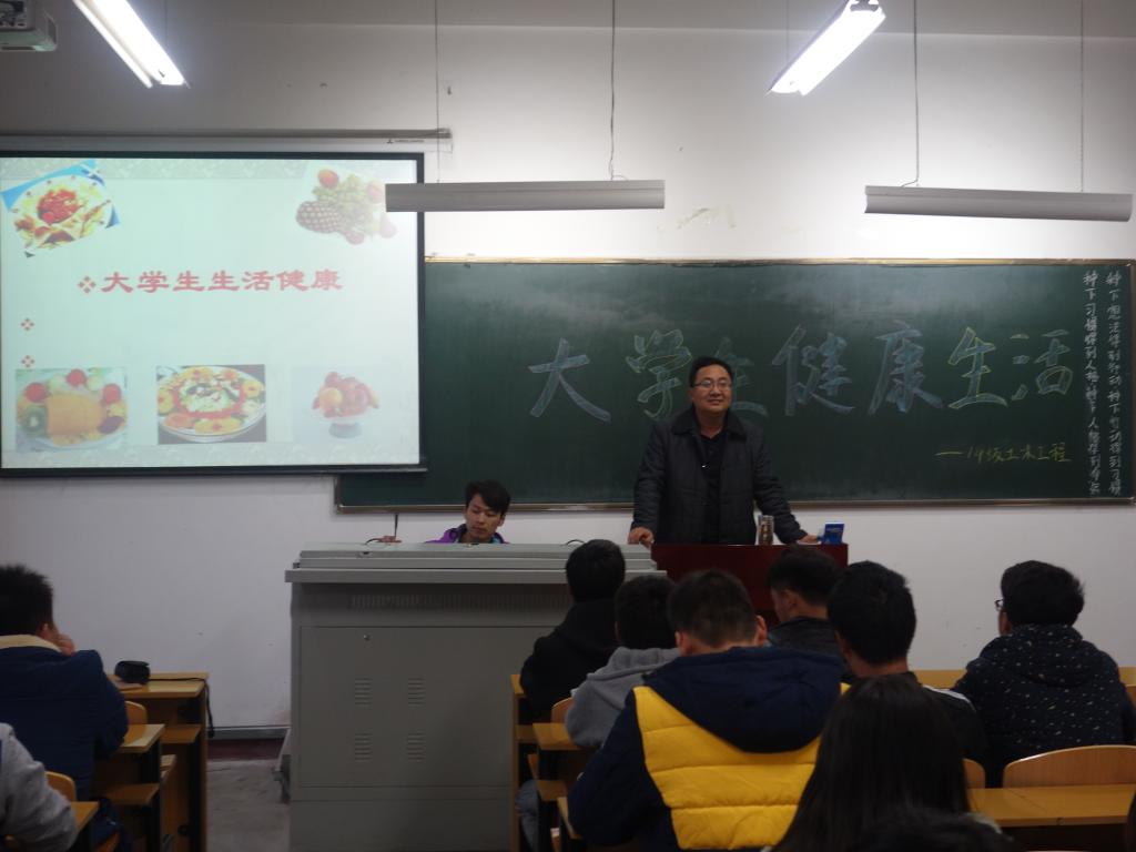 2015年11月21日,14级土木工程1、2班在三区104召开了“大学生健康生活”的主题班会。本次班会由班主任刘星明和14级土木工程全体同学共同参加。