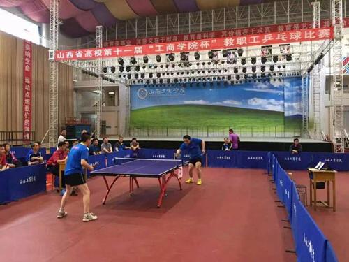2015年5月22日至24日,由山西省教育厅主办的“山西省高校第十一届教职工乒乓球比赛”在山西工商学院举行。本届高校教职工乒乓球比赛共有29个代表队200多名选手参赛。此次赛事分为高校领导组和高校教工组,设有校级领导团体赛、教工团体赛、教工男子单打、教工女子单打等竞赛项目。在校工会的精心组织下,由我校5名教职工组成的代表队参加了此次比赛。