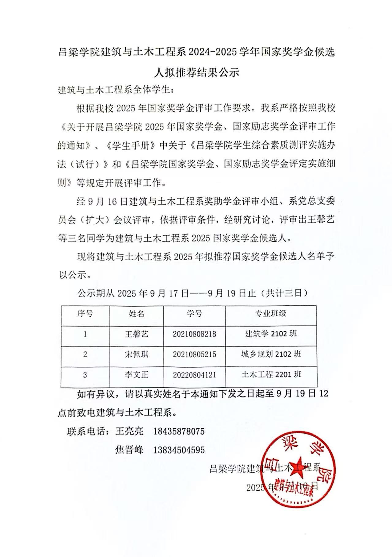 必威西汉姆联2024-2025学年国家奖学金候选人拟推荐结果公示