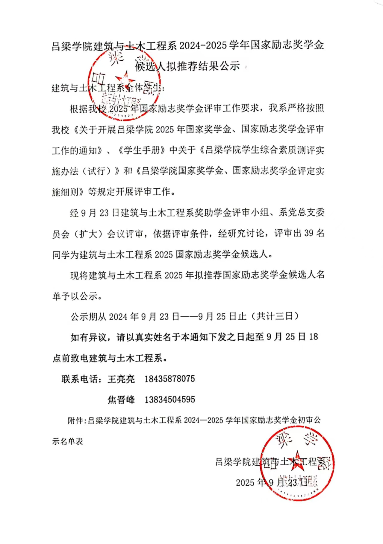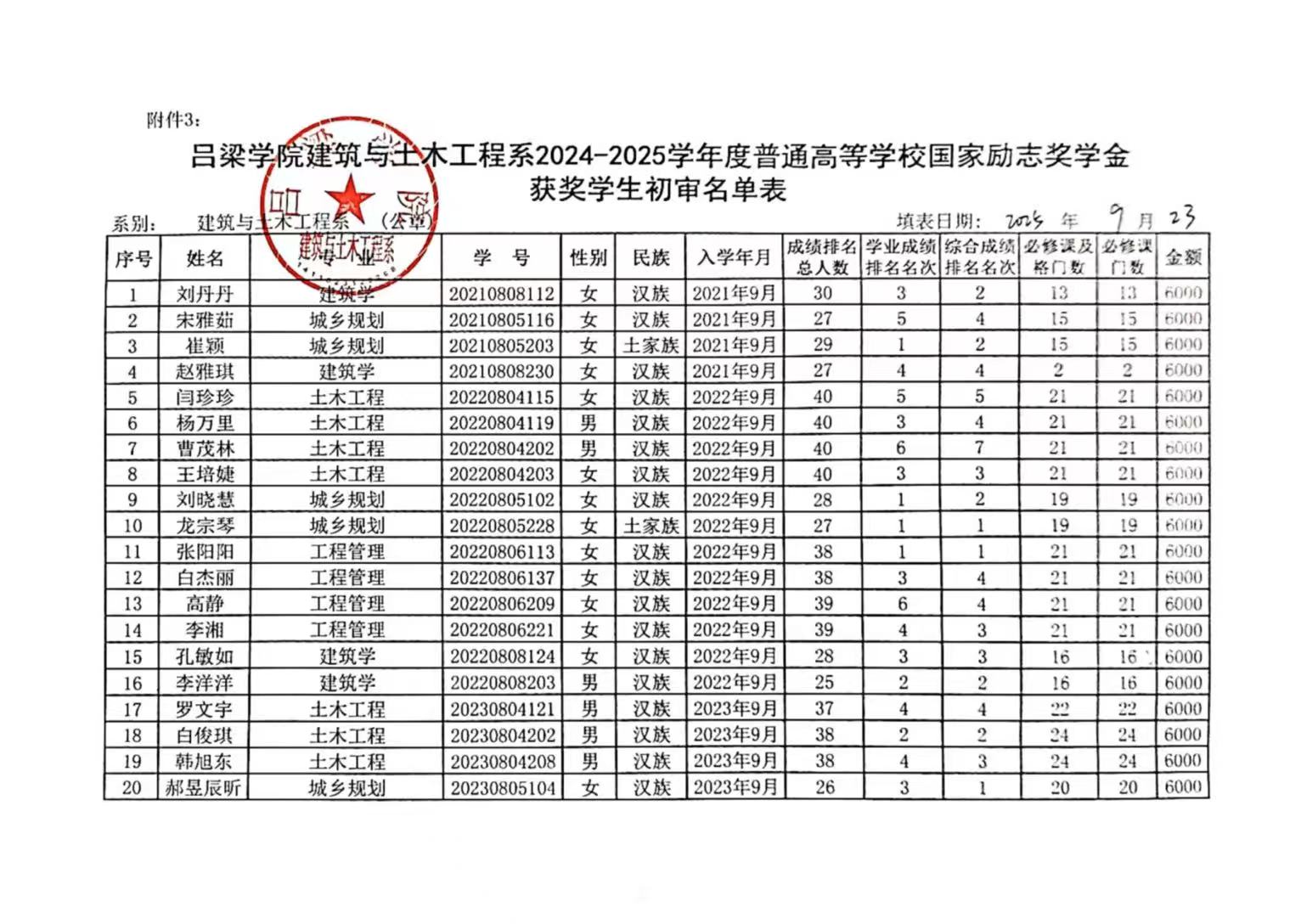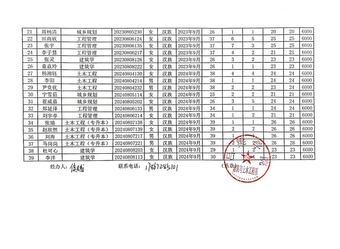 必威西汉姆联建筑与士本工程系2024-2025学年国家励志奖学金候选人拟推荐结果公示