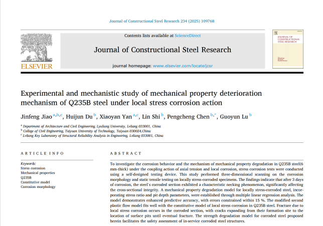 实验室以“理论创新+技术研发+工程应用”为主线,主要研究方向:钢结构疲劳与断裂、智能建造技术研究、空间结构健康监测理论和技术研究、既有结构安全性评估及加固理论研究等。目前,实验室正在开展钢结构与空间结构安全性与耐久性方面的研究,重点探讨在应力腐蚀耦合作用下钢结构常用规格材料、圆形钢管构件和焊接空心球-钢管节点力学性能试验和理论研究,研究成果将为新建和在役空间结构可靠性分析提供理论依据。