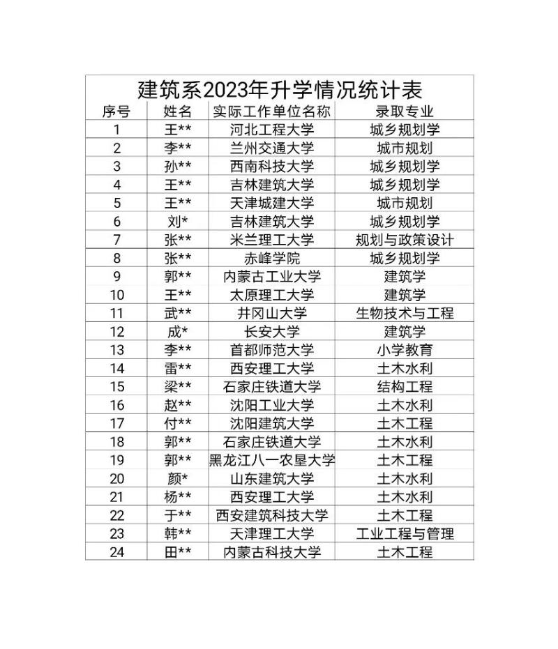 建筑系2023年升学情况统计表