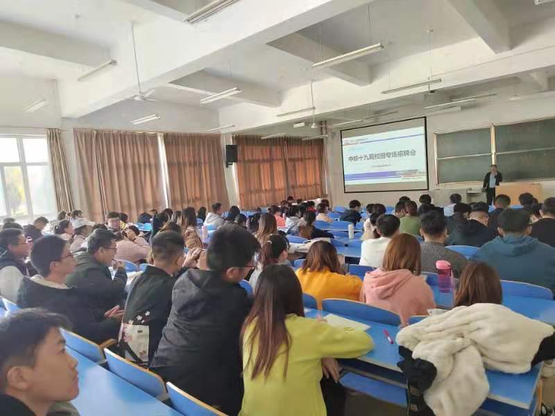2021年11月4日15:00,建筑系在综B阶101教室举行了中铁十九局集团专场招聘会。参与本次会议的有建筑系党总支书记王亮亮、中铁十九局集团人力资源部部长赵博涛以及2022届土木工程、工程管理毕业生。